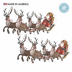 Window Flakes Small 8.5" (set of 2) Santa Sleigh & Reindeer Window Cling Decal Christmas Decoration. Home Reusable Holiday Decor.