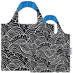 Wrapables Large & Small Allybag Foldable & Lightweight Reusable Grocery Bags (Set of 2), Navy Swirls