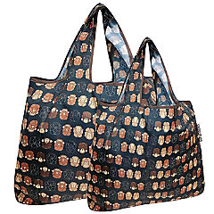Wrapables JoliBag Nylon Reusable Grocery Bag, 2 Pack, Cute Creatures