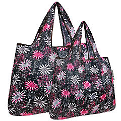 Wrapables Large & Small Foldable Tote Nylon Reusable Grocery Bags, Set of 2, Pink in Bloom