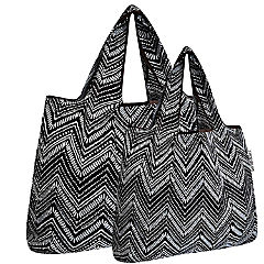 Wrapables Medium Nylon Reusable Shopping Bags (Set of 2), Happy Food