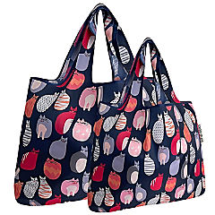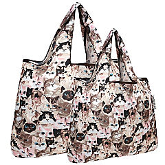 Wrapables Large & Small Foldable Tote Nylon Reusable Grocery Bags, Set of 2, Cool Cats