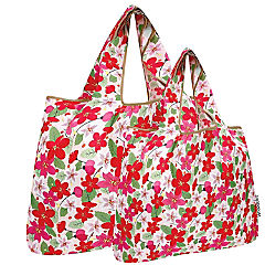 Wrapables Large & Small Nylon Reusable Grocery Bags, Set 2, Sakura