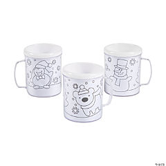 4" 8 oz. Color Your Own Winter Reusable BPA-Free Plastic Mugs - 12 Ct.