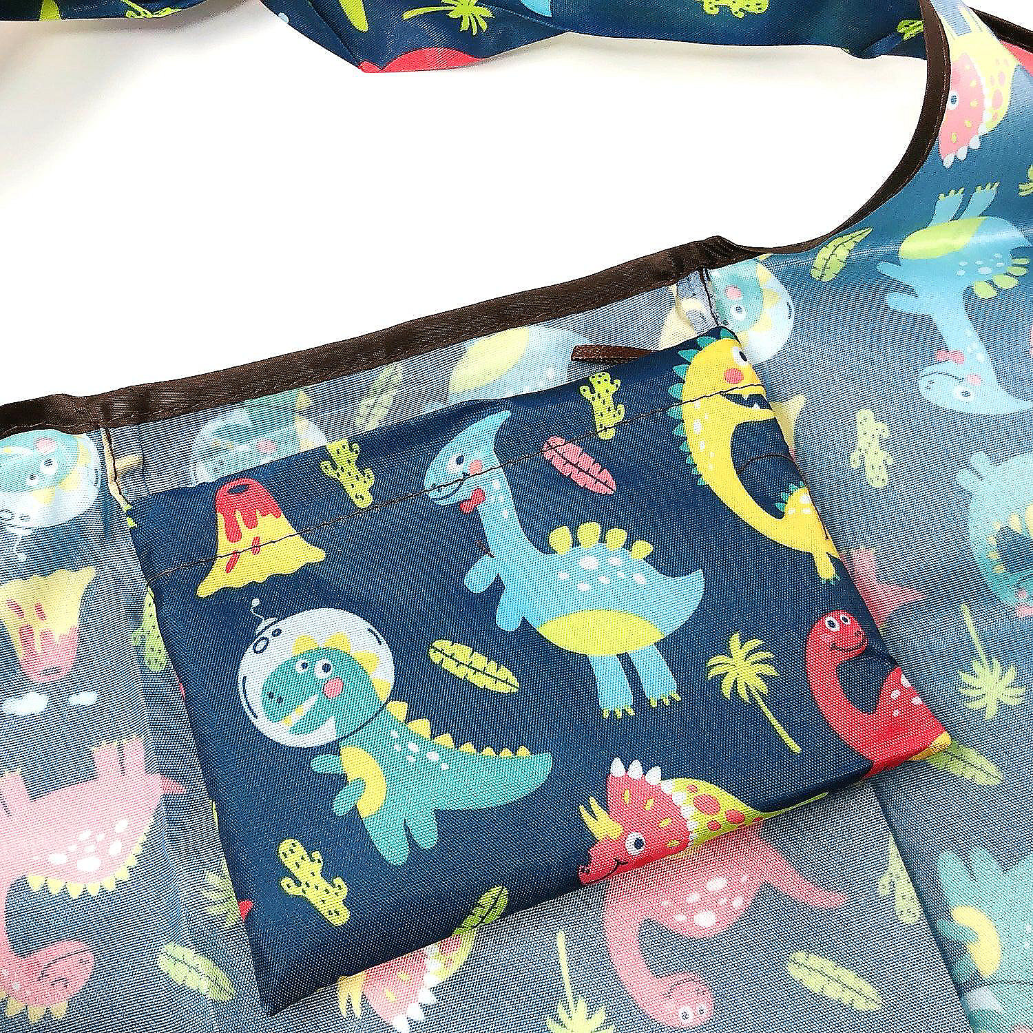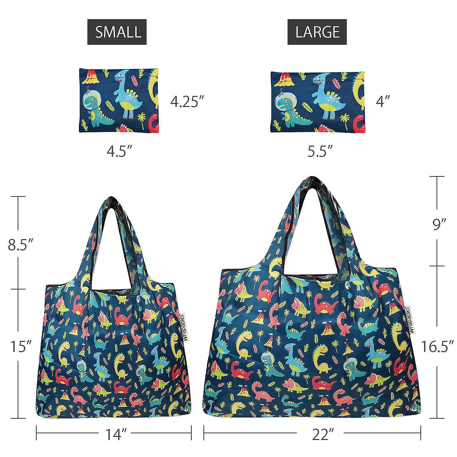 Wrapables Large & Small Foldable Tote Nylon Reusable Grocery Bags, Set of 2, Dinosaurs