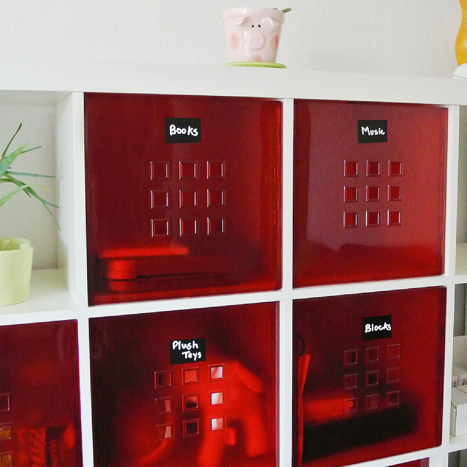 Use these chalkboard labels on storage containers, toy bins, glass jars, canisters and much more to organize your home and kitchen. The labels can be used on virtually any hard, smooth surface. They are also reusable; you can peel them off and erase the text on them and then use them again. Here are some other great ways to use these labels: 1. Decorate your wall, mirror, door and cupboards with these labels. 2. Use these labels as wine tags for your wine glasses and cups. 3. Label and decorate your presents by using these labels as a gift tag. 4. Use these labels at weddings and parties as table markers, wine tags, decor and gift tags.Organize your home and kitchen with these labels. Use them on storage containers, toy bins, glass jars, canisters, and more. See below for ideas.Reusable; peel them off and erase the text on them and then use them again.Sold as a set of 32 labels.Dimensions: 6 pcs 3.5"L x 2.5"W; 8 pcs 3.5"L x 2"W; 8 pcs 2"L x 1.5"W; 10 pcs 2"L x 1"W. Material: Vinyl plastic.Chalk Pen: Can be used on chalkboard labels, glass, windows, or any non-porous hard surface. Removes easily with a damp cloth.